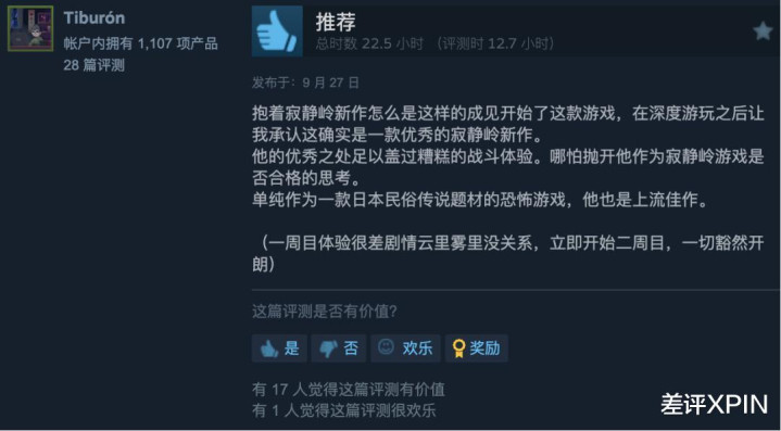 当然《寂静岭 f》的实际质量还可以,好评率 70%,大概是佳作和烂作的中间阶段。